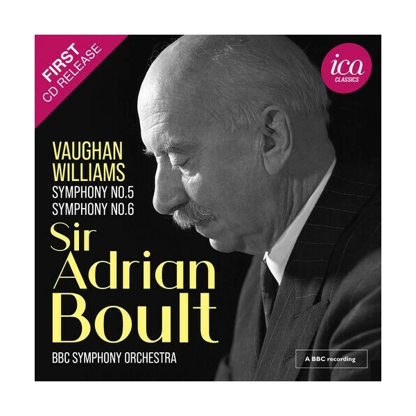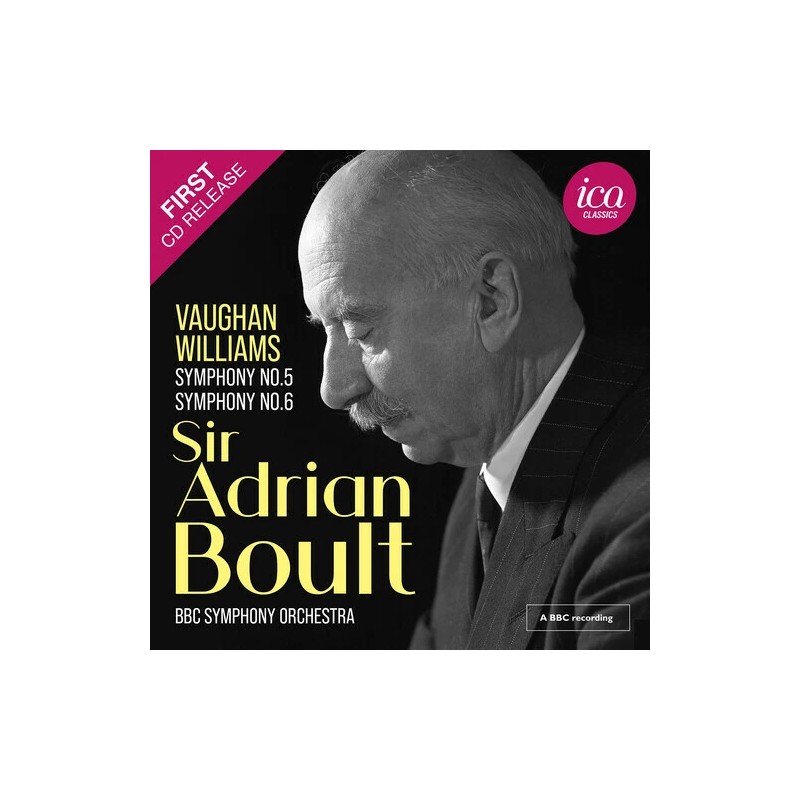 Sir Adrian Boult began his long association with the music of Vaughan Williams in 1918 when he conducted A London Symphony earning praise from the composer. Thereafter Boult gave many first performances of Vaughan Williams's works including the 3rd, 4th and 6th symphonies and Job was dedicated to him. Boult also recorded all the symphonies extensively in the studio for Decca and EMI during the 1950s and late 1960s. The pastoral 5th symphony (1938-43) is considered a masterpiece based on Bunyan's The Pilgrim's Progress which some critics have suggested was a vision of peace for a war-weary nation, whereas the angry 6th symphony (1944-47) bears the marks of the war years in the opposite extreme, a portrait of a world laid to waste by a nuclear holocaust. Boult's performances here, caught live at London's Royal Albert Hall Promenade Concerts in 1972 and 1975, have even more adrenaline and excitement compared to their studio equivalents. Anthony Payne (Daily Telegraph) described the 1975 Prom performance of Symphony No.5: "one of the most taut and concentrated interpretations I have ever heard of the work". When it comes to Symphony No.6, Martin Cotton, the music critic and writer wrote: "what Boult achieves in the four linked movements of Symphony No.6 is a sense of overall direction, and as he did in Symphony No.5, a strong feeling for the structure and emotional depth of the work'.