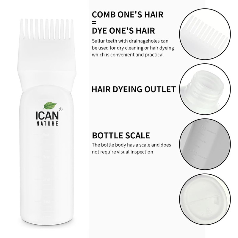 ican Hair Dye, Oil Root Applicator Bottle, 180ml with Shampoo Brush, Combo Set