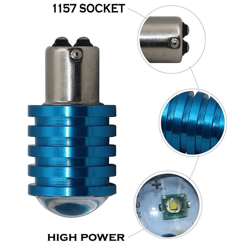 - Standard 1157 (BA15S) Single-contact; High Brightness 1 SMD per bulb give off a 360 degree Extremely Bright Blue light output, 300% brighter than original stock bulb, assuring you will be seen more clearly and from further away during daytime and night, providing other drivers more time to react.