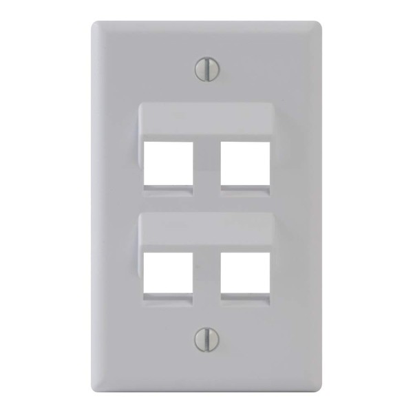 ICC Angled Faceplate with 4-Angled Ports for EZ/HD Style in Single Gang, White