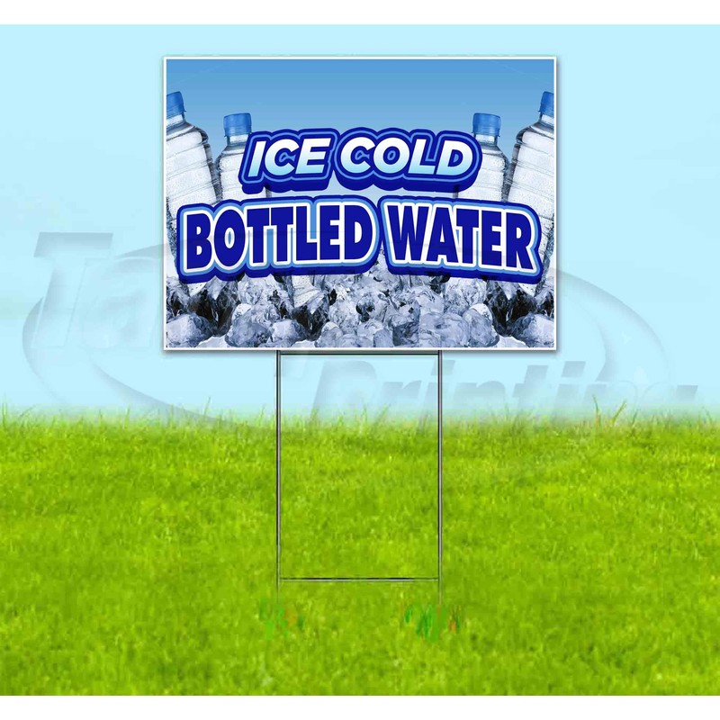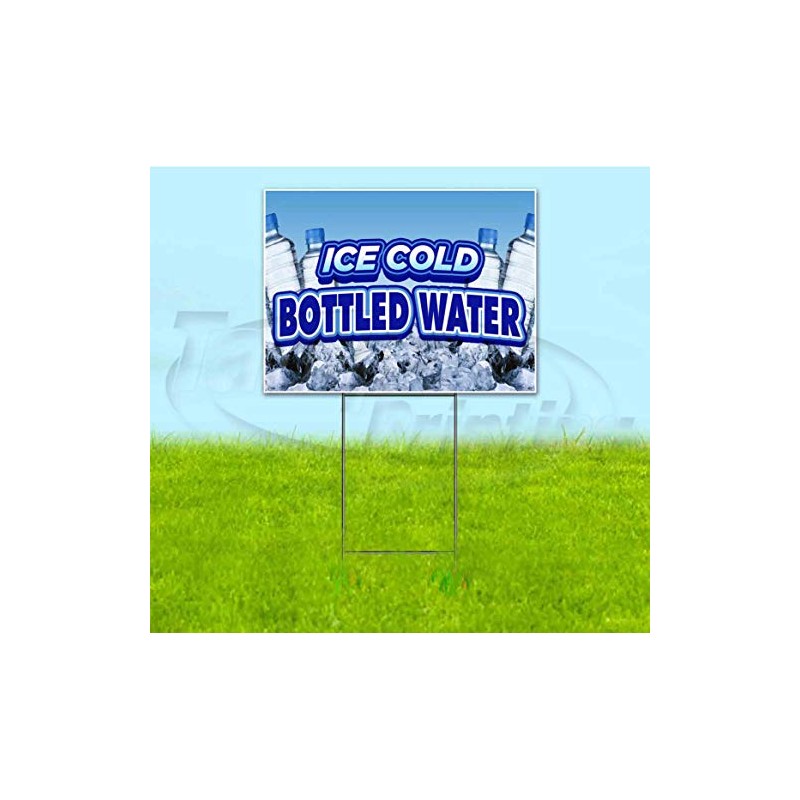Ice Cold Bottled Water (18" X 24") Yard Sign, Quantity Discounts, Multi-Packs, Includes Metal Step Stake, Bandit Sign