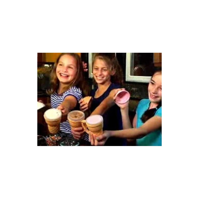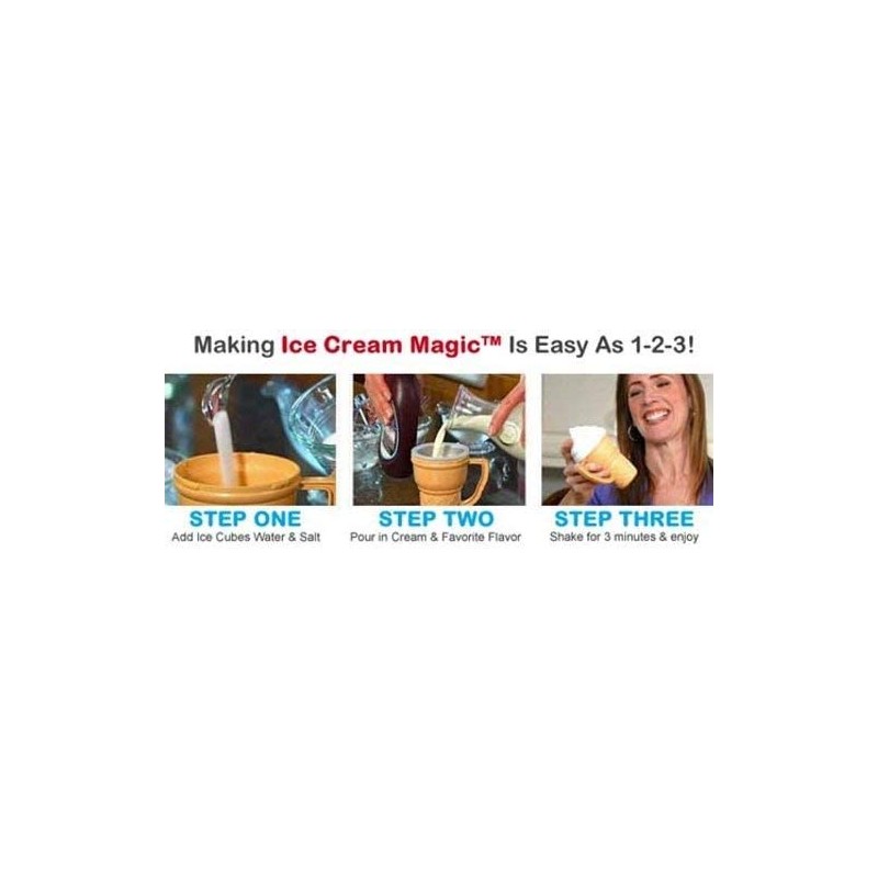 It can make ice creams in three simple steps and can be started with adding ice cubes, water and little salt to start a deep freezing process inside the product. Add desired flavor and some cream should to be poured in the bowl that fits right above the ice cubes. Lastly the product needs to be shaken for about 3 minutes for a yummy ice cream. Ice Cream Magic is a wonderful product and can be used by anyone and can be a shake your ice cream activity in party for kids. Comes in mail order packaging