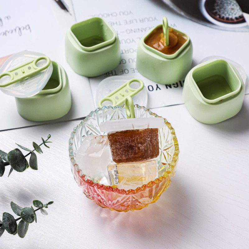 • Versatile Molds: These versatile molds create square ice cubes, ideal for whiskey and cocktails. But that's not all—simply use the included accessories, insert them into the mold, and freeze to make popsicles.