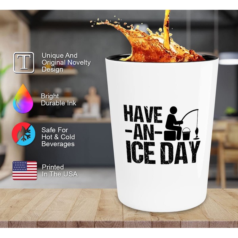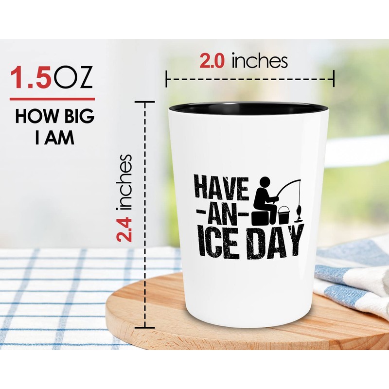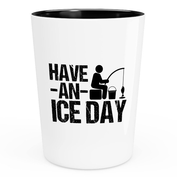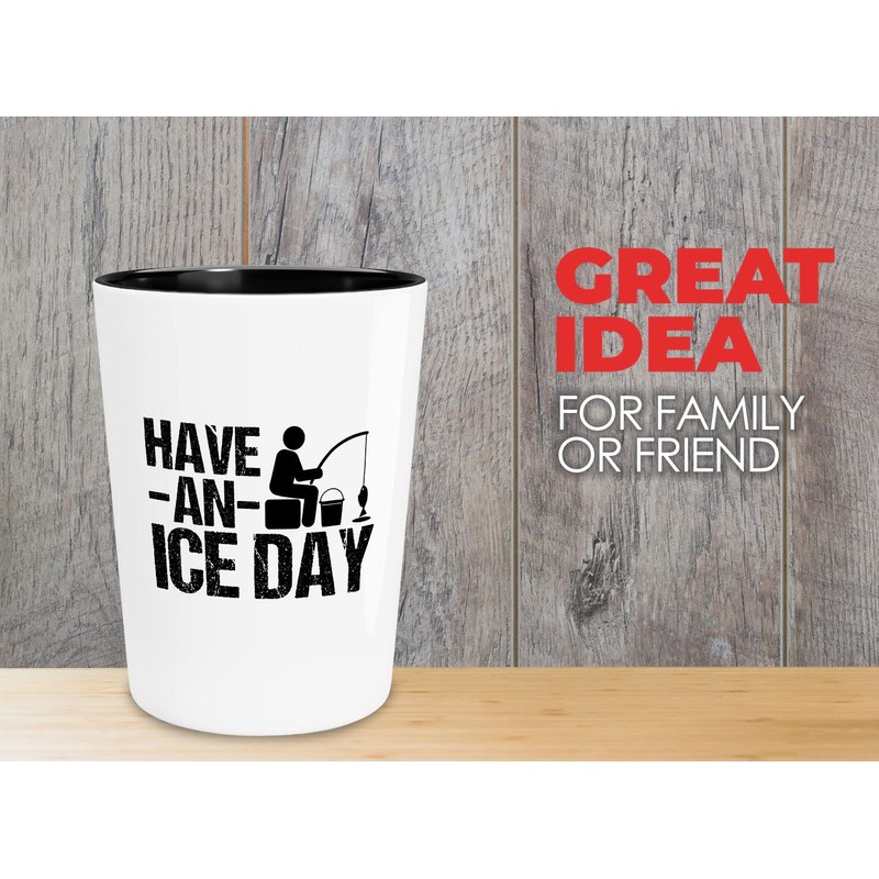 Ice Fishing Shot Glass 1.5oz - Have An Ice Day - Funny Fisherman Fishy Ocean River Vacation Ice Holes Hobbies Husband Catfish Arowana