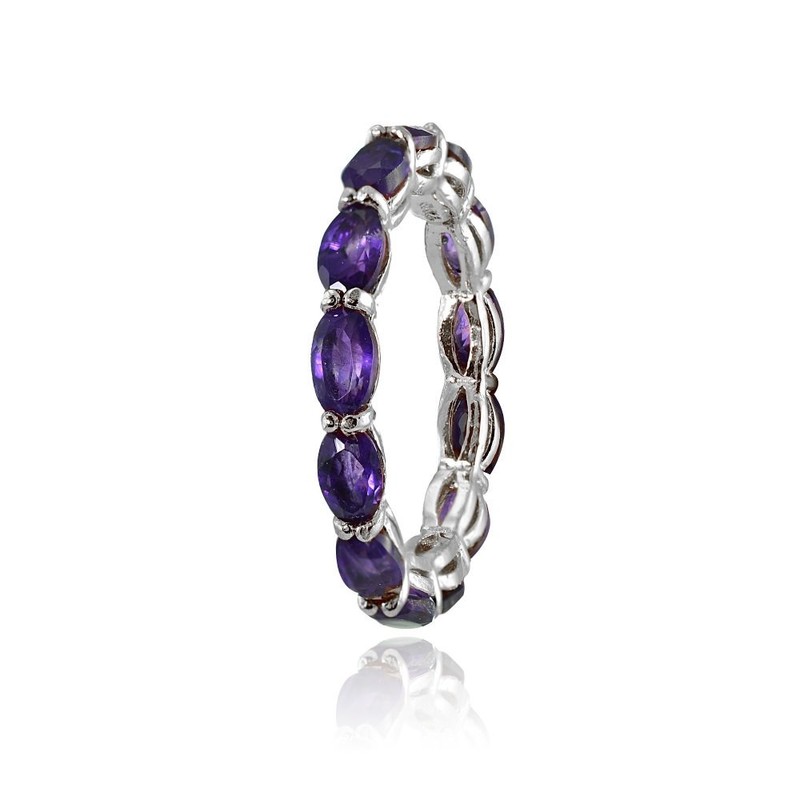 Ice Gems Sterling Silver African Amethyst 5x3mm Oval-Cut Eternity Band Ring, Size 7