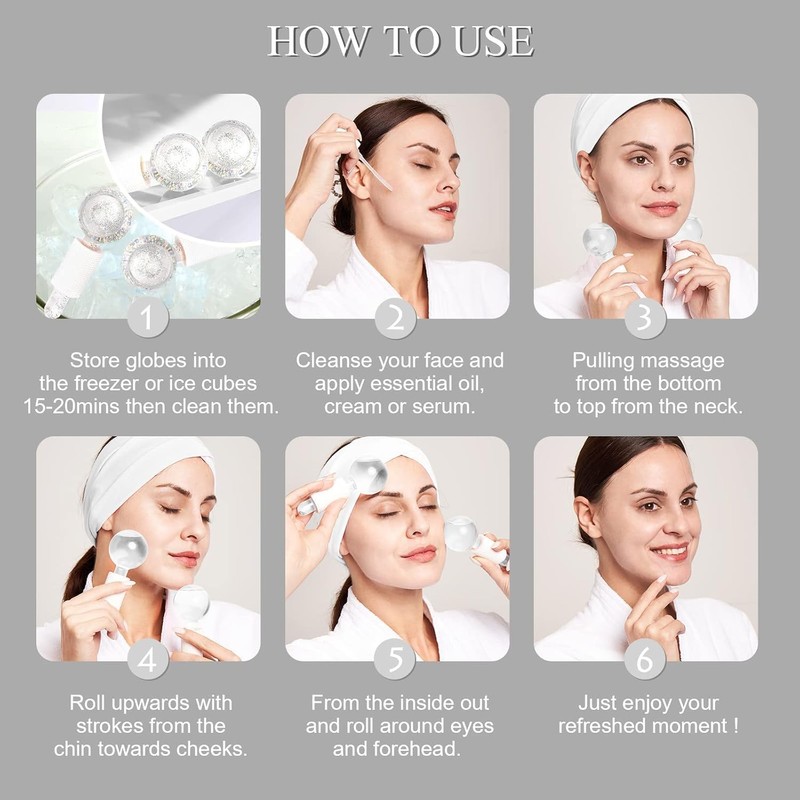- Cooling Face Globes for Relaxation - These skin care glass balls offer a refreshing cooling sensation, perfect for calming and soothing your skin. For optimal results, chill the cooling face globes in the fridge for 20 minutes or in the freezer between 14-40℉ (-10-9℃).