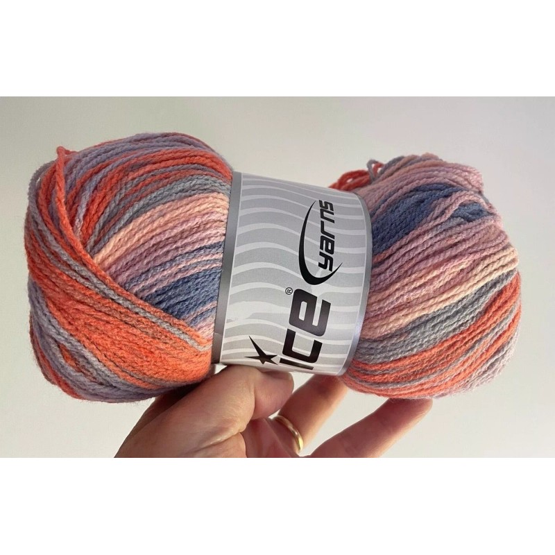 Ice Magic Light #70347 Lilac Orchid Coral Grey Ice Yarns Self-Striping DK Yarn 393Yd