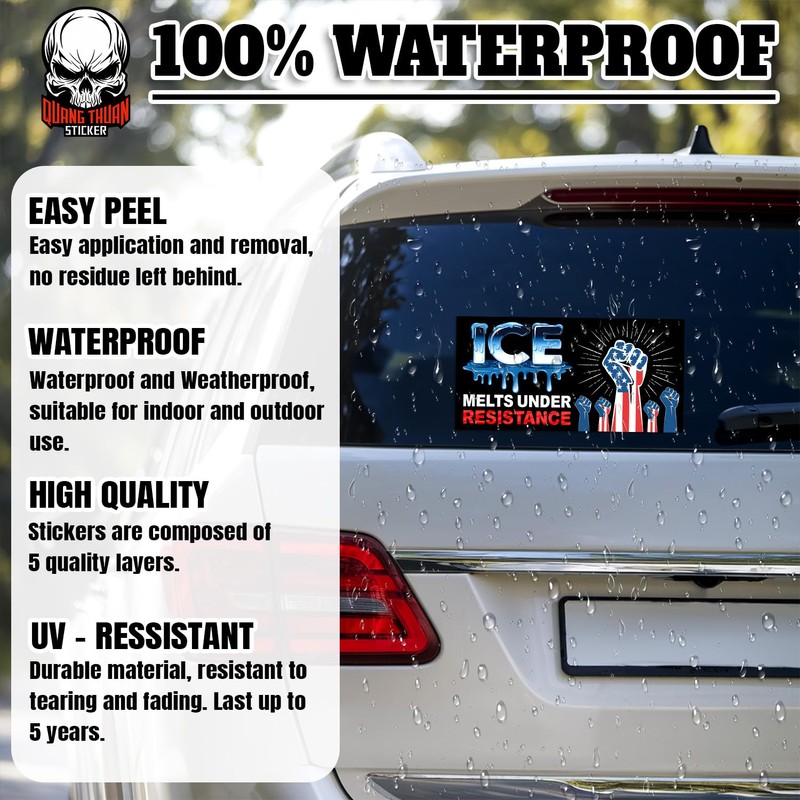 ICE Melts Under Resistance | Bumper Sticker or Car Magnet | Patriotic Anti ICE Social Justice Gifts for Door Cars [7.5x3.75]