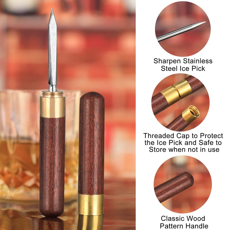 - FRIENDLY DESIGN - Squared wooden handle is easy to grip and won’t roll away when not in use; using an ice pick adds flare to chilling and serving beverages.