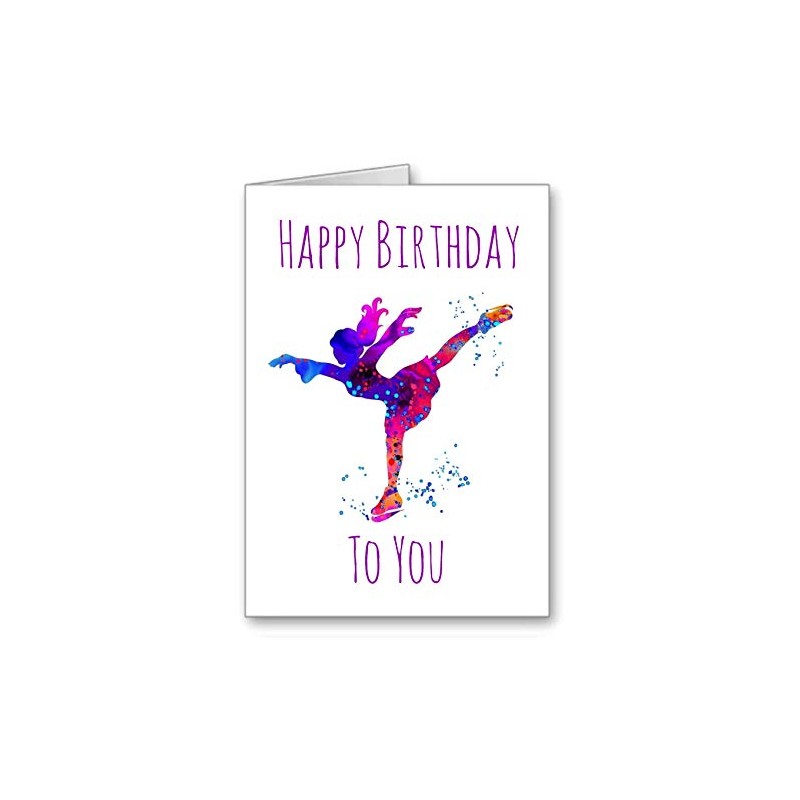 Ice Skating Birthday Card Happy Birthday Watercolour Effect (Envelope Included) Not Personalised but Suitable for eg Friend Sister Mum Daughter Granddaughter Auntie etc