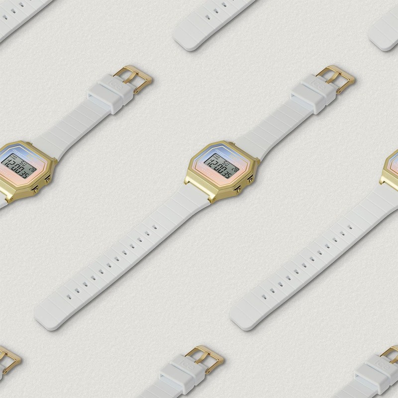 - Immerse yourself in a sea of colours with the ICE number Retro - White Majestic. This digital watch has a calendar function: day date, stopwatch, dual time, alarm and light