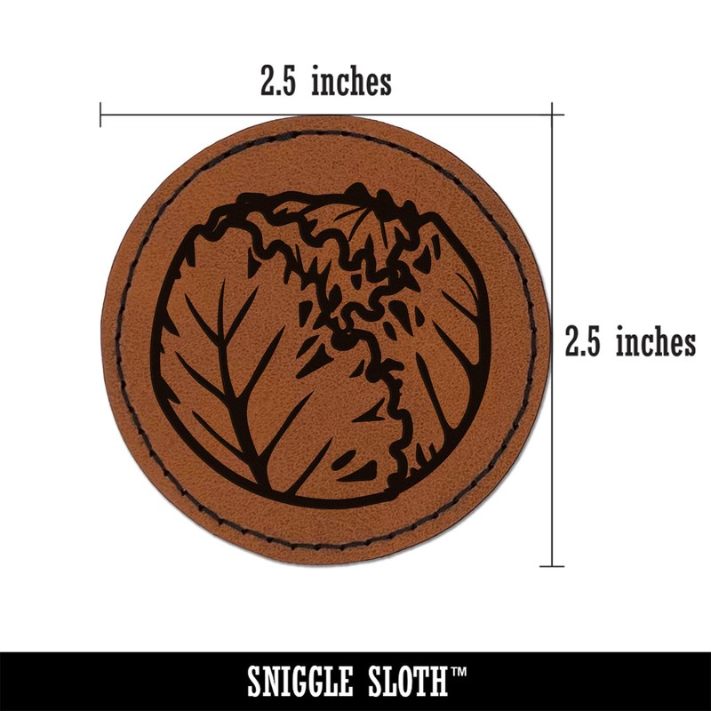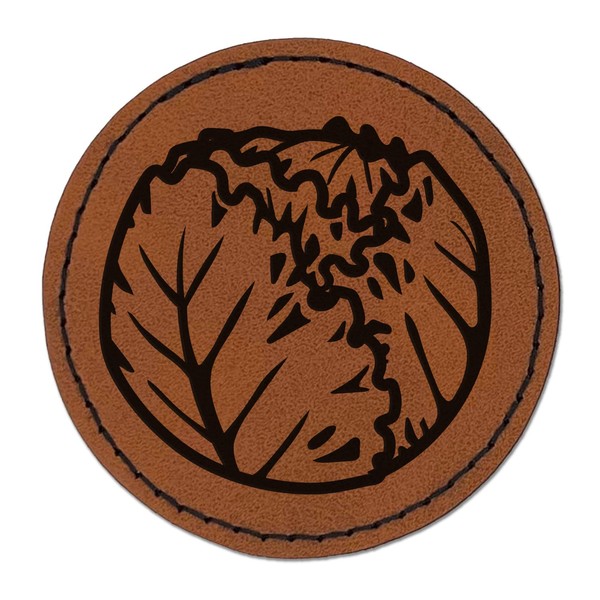 Iceberg Lettuce Vegetable Round Iron-On Engraved Faux Leather Patch Applique - 2.5 Inch - Brown