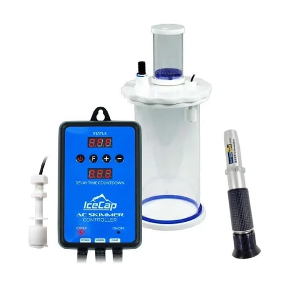 • This Bundle includes THREE items: The IceCap AC Skimmer Controller; IceCap Waste Collector; & the MarineAndReef Reefractometer. The IceCap AC Skimmer Controller and IceCap Waste Collector are designed to work together. When the float switch connected to the Controller detects the Waste Collector is full, it turns off the skimmer pump. You can use this package with any IceCap Protein Skimmer or any other protein skimmer (skimmer not included).