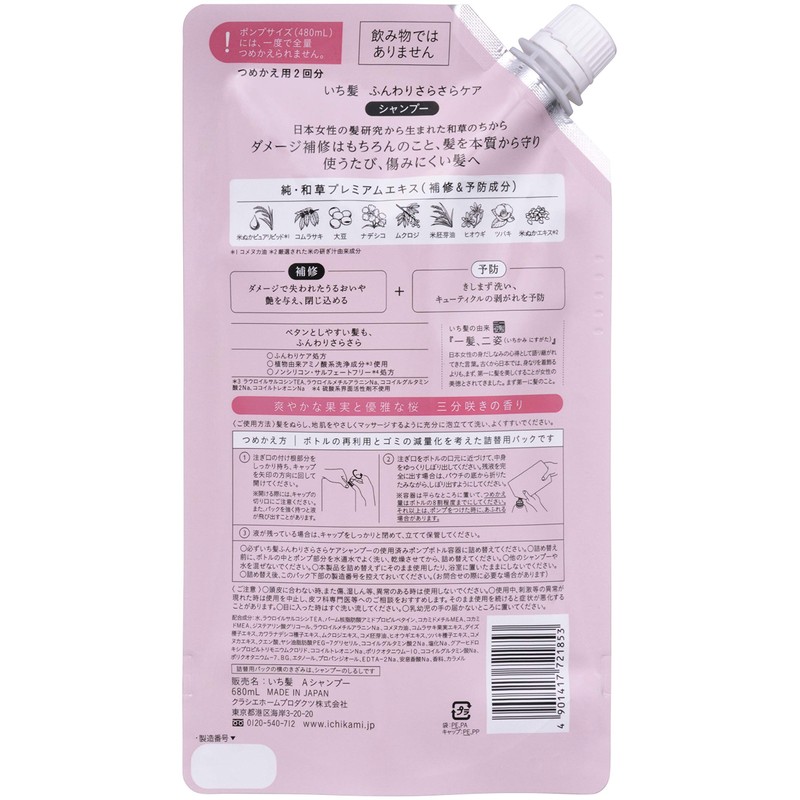 Ichikai Fluffy Smooth Care Shampoo Refill, 2 Doses, Sakura, 22.8 fl oz (680 ml) (x 1)
