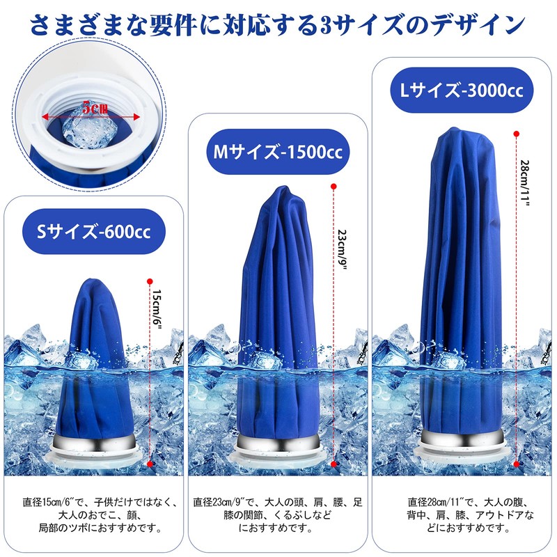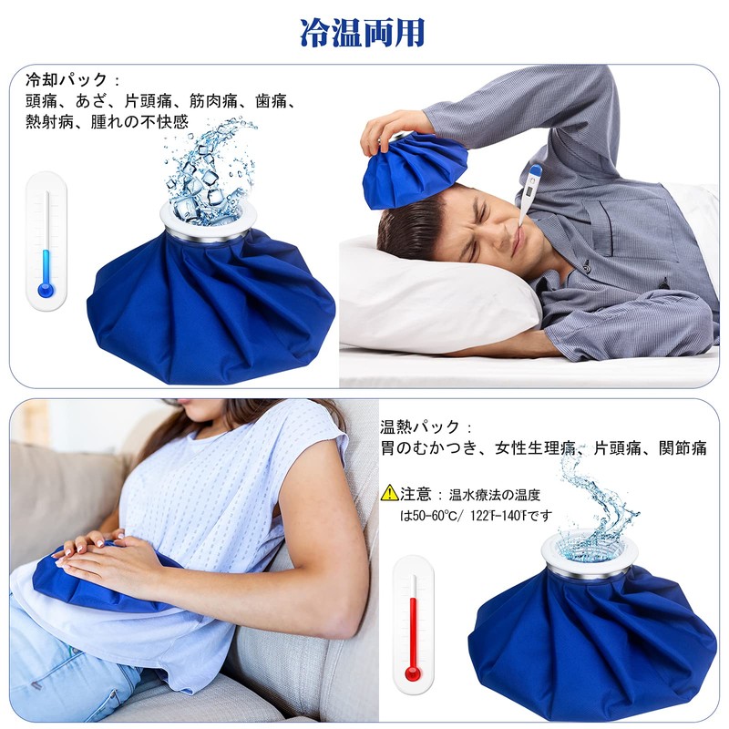 - (Cold and Hot Use) Keeps cold cold drinks cold and allows for long periods of time. Quickly and easily cools knees, elbows, ankles and wrists after exercise. For cooling use, put 2/3 of ice and water into the ice bag. (★Note: If you add ice, there may be a large difference between room temperature and condensation. It is recommended to wrap it with a towel. When using hot heat, add warm water to the ice bag. (★Note: Hot water temperature is 50-60℃/ 122℉-140℉)