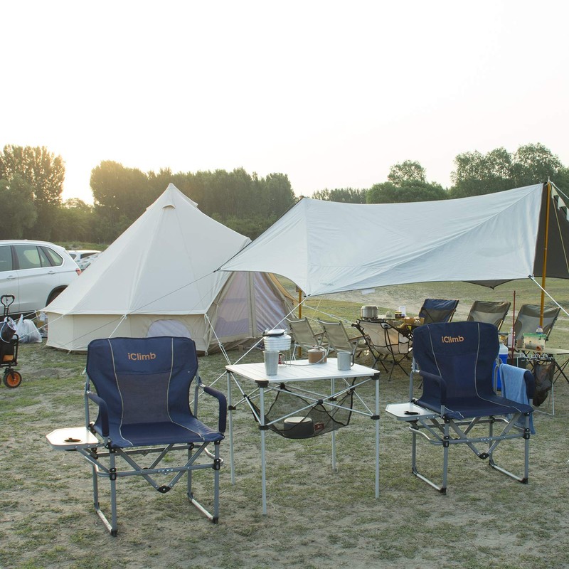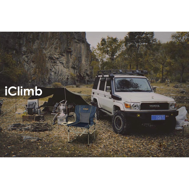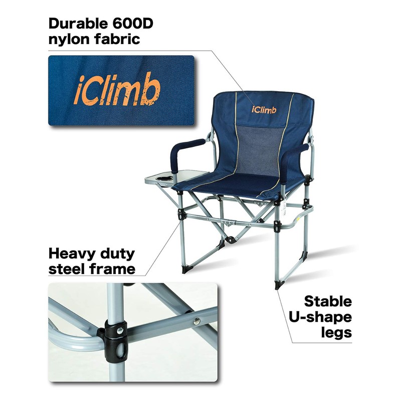 iClimb Heavy Duty Compact Camping Folding Mesh Chair with Side Table and Handle (Navy)