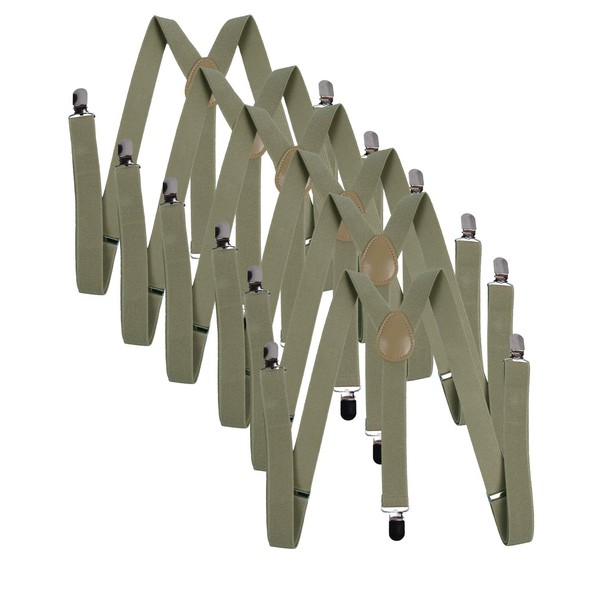 ICObuty Men's Y Shape Suspender Adjustable Elastic Solid Color 6 Pack, Khaki Green, Medium