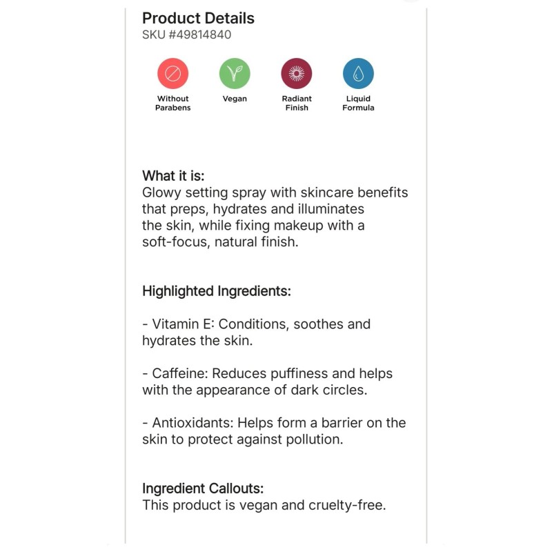 - Effect: Dewy, Sheer, Shimmer
