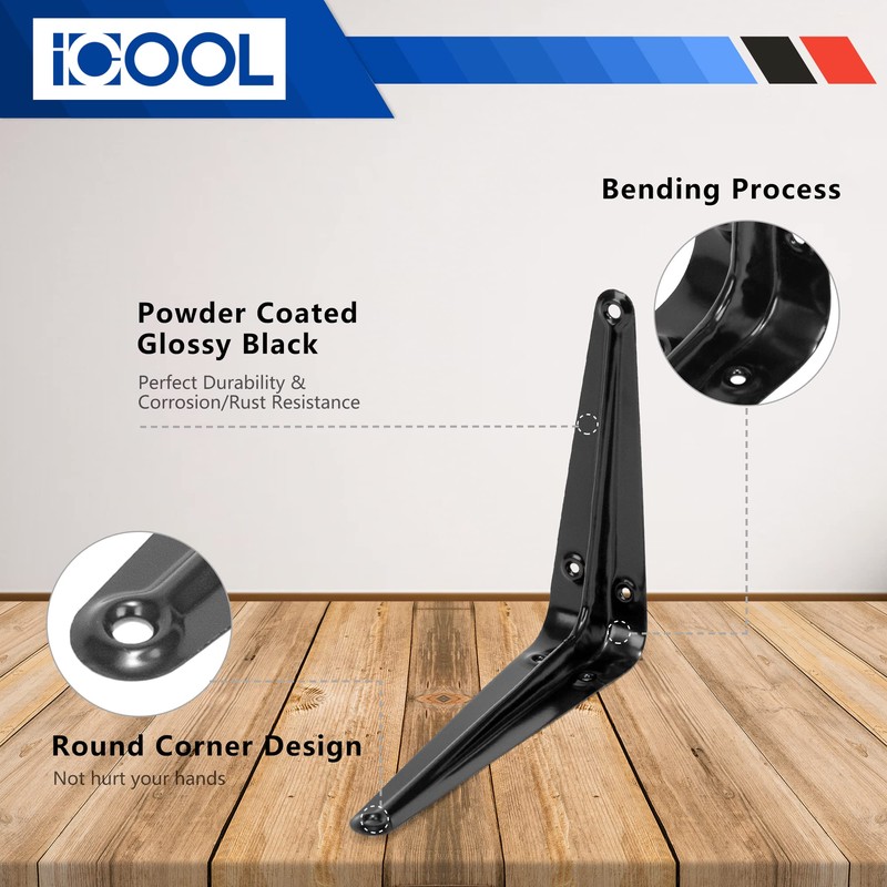 【Bracket Features】Powder glossy black coating avoids corrosion and rust, extends service life, and easy to clean. Sturdy welding process, adopt triangle structure, more stable and stylish. Round corner on both ends won't hurt your hands.