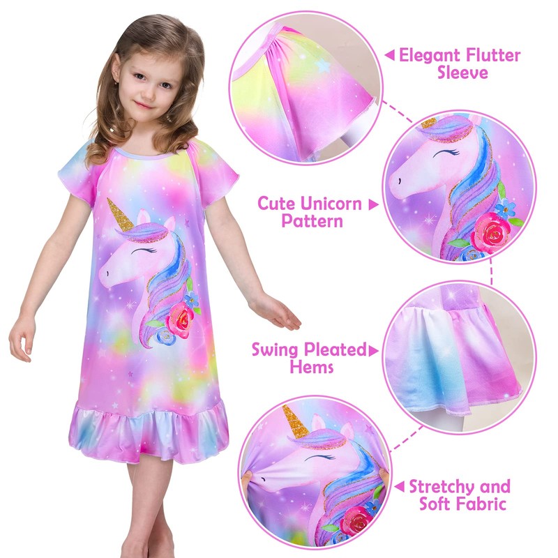 - 【Exquisite Design】Designed with elegant flutter sleeve along with pleated hems, this crew neck girls sleep dress looks lovely and elegant. Printed with 3D dye-sublimation technology, the vibrant colors and clear details will not fade easily.