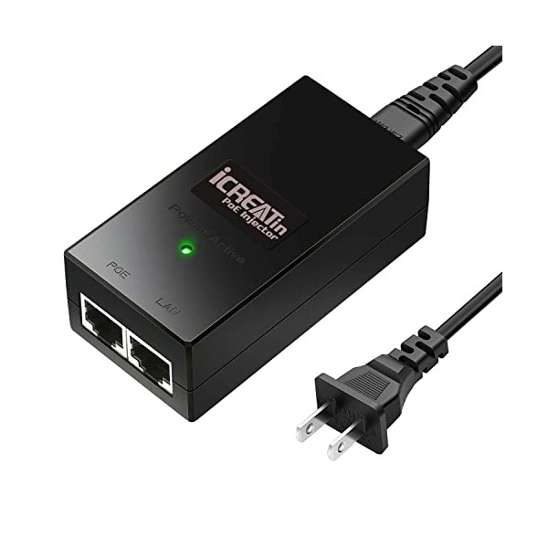 iCreatin 48V Gigabit PoE Injector Adapter, Up to 15.4W Power Supply, 10/100/1...