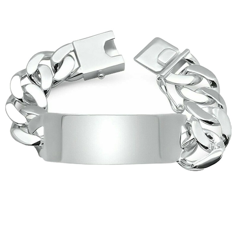 ID Bracelet Real 925 Sterling Silver Filled Men's Solid Identification Cuff