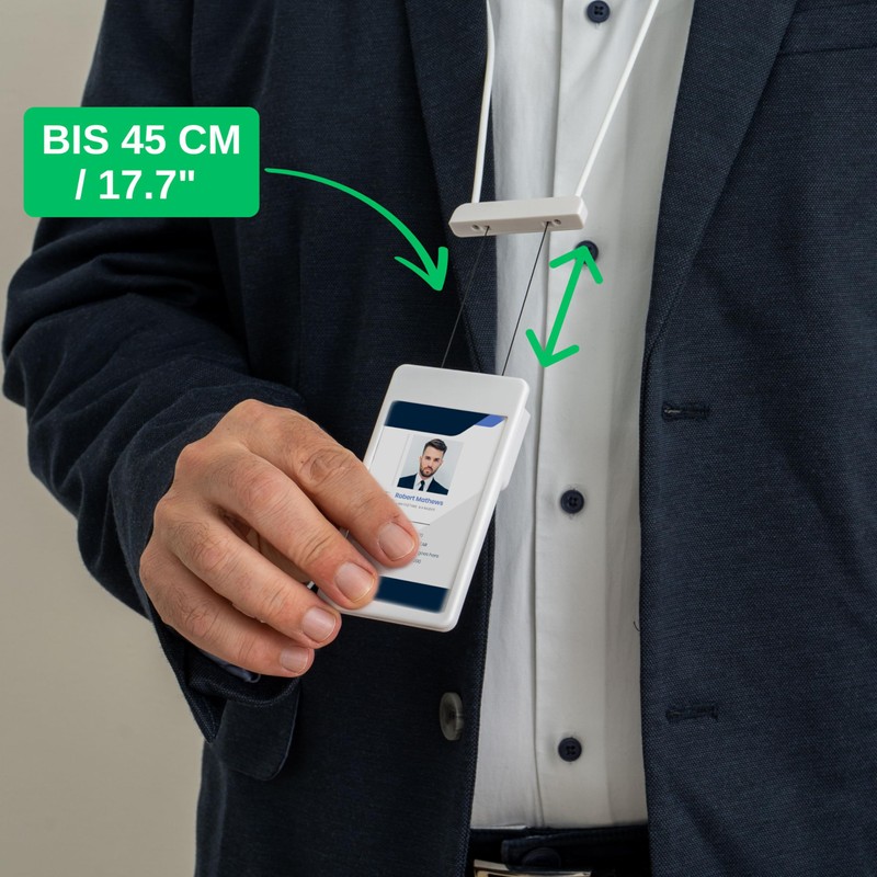 - Practical retractable key roll as a collar - for access cards - badges - ID documents: with the help of the ID cover, the access card is always at hand.