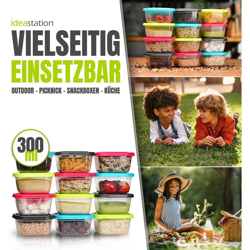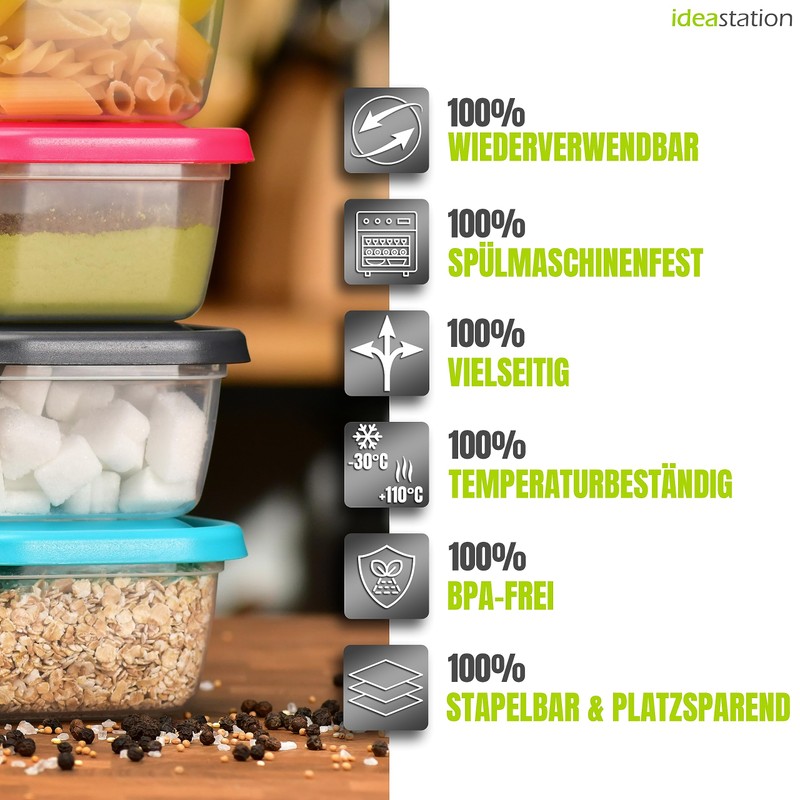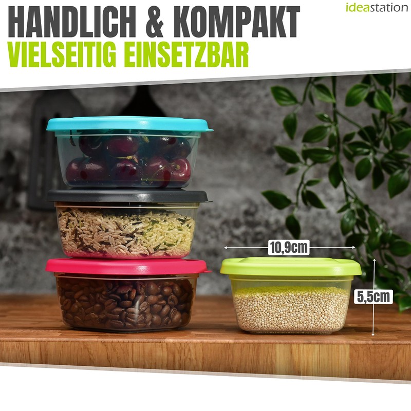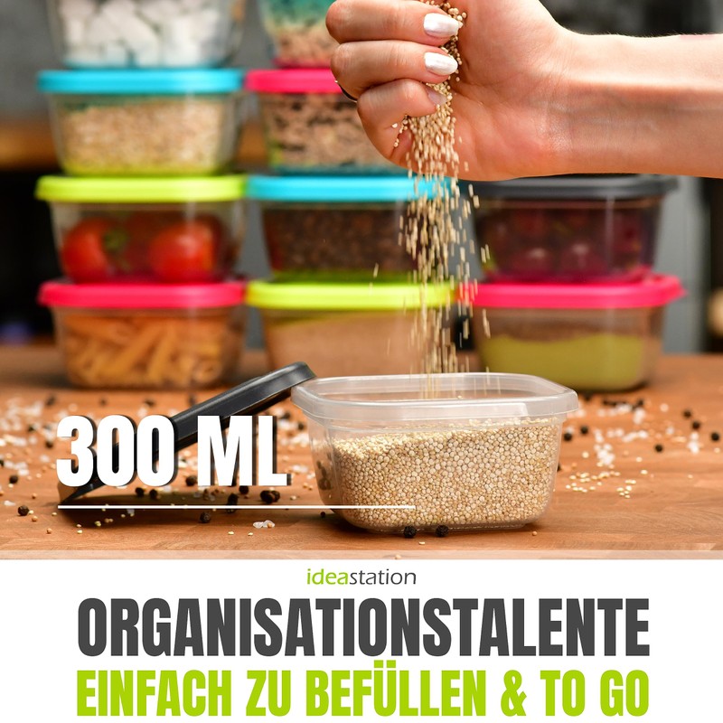 idea-station Storage Containers, 250 ml, Anthracite with Lid Stackable Food Storage Containers Storage Boxes Lunch Box Kitchen Aid Meal Prep Freezer Containers, Set of 12
