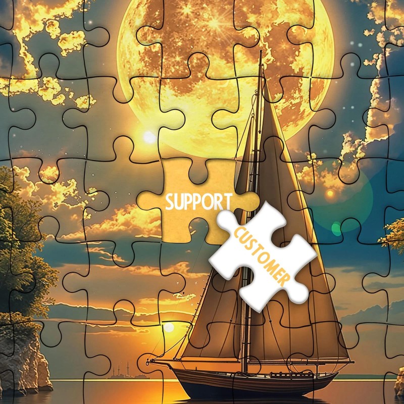 Beautiful Moon Sailboat Puzzles: This dreamy seascape artwork showcases a sailboat gliding under a luminous full moon, surrounded by glowing clouds and tranquil waters. With its rich colors and serene composition, it may enhance the atmosphere of any room. A beautiful blend of nature and imagination, this piece offers a touch of peaceful escape to your space