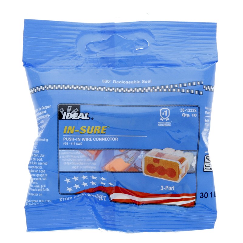 IDEAL Electrical 30-1333S In-Sure Push-In 3 Port Connector Orange, (10PK)