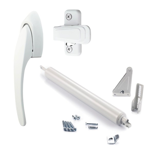 Ideal Security 9CS Bundle Standard Storm Door Closer with CS Pull Handle Set, Adjustable Speed, Smooth Closing for Lightweight to Medium Doors, White