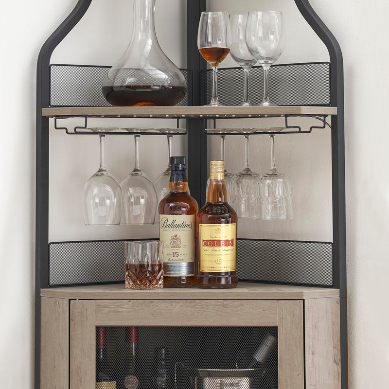 - MAKE USE OF CORNER SPACE: Elevate your space with the corner design, which allows it to blend seamlessly into any corner of your living room, kitchen, study, or bedroom, ensuring efficient use of your precious space. Additionally, the 29 inches in height wine cabinet is an operation table, which can pour wine, put wine bottles, and wine glasses.