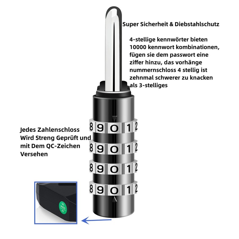 • Super security and theft protection: 4-digit passwords provide 10,000 password combinations, add a digit to the password, the curtains number lock 4 digit is ten times harder to crack than a 3-digit. Improve safety and better protect your personal items. You can set any number combination as a password. However, please note your password.