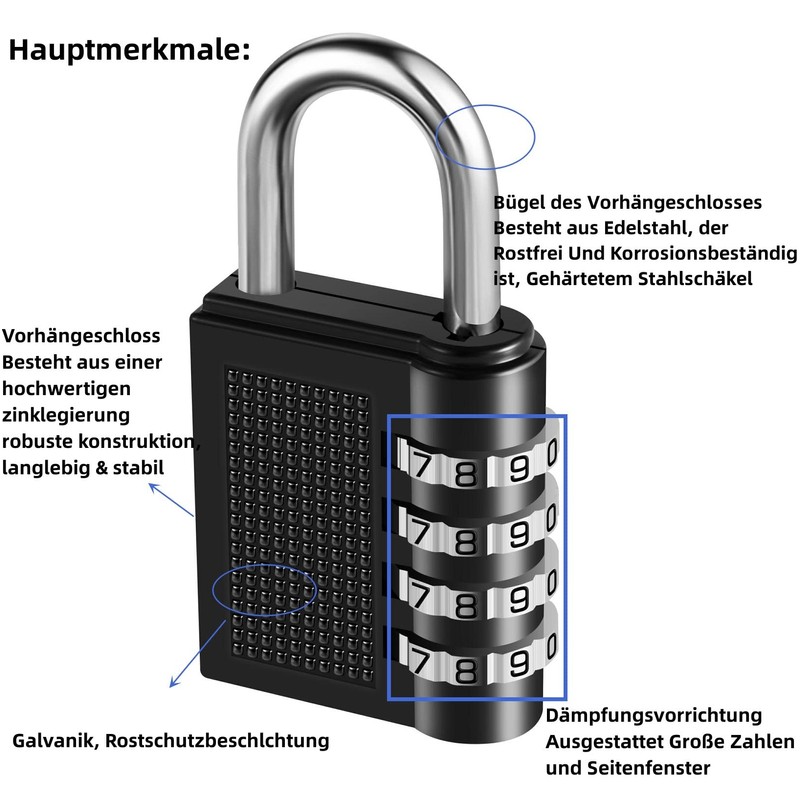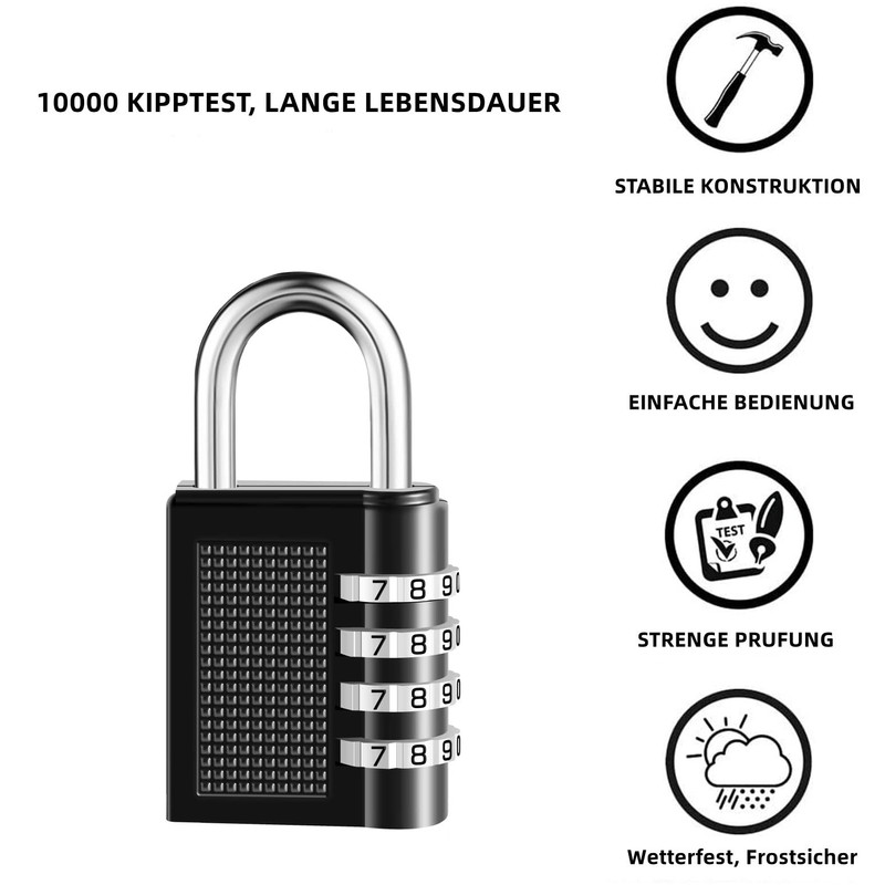 • IDEALUX Padlock Combination Locks 1 Piece, Locks with Combination Code 4 Digit, Curtains Combination Lock Locker for Gym, Combination Padlocks Weatherproof (Black)/2 Pieces 4-Digit Combination Lock, Combination Lock, Weatherproof Metal & Plated Steel Combination Lock for School, Gym, Combination Lock, Padlock, with Individually Adjustable Combination Code, Level 4, 80. mmmm*42