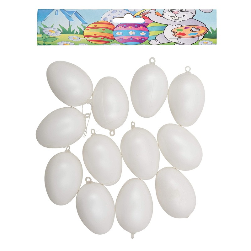 Idena Plastic Eggs, 12 items, white, 6 cm, White
