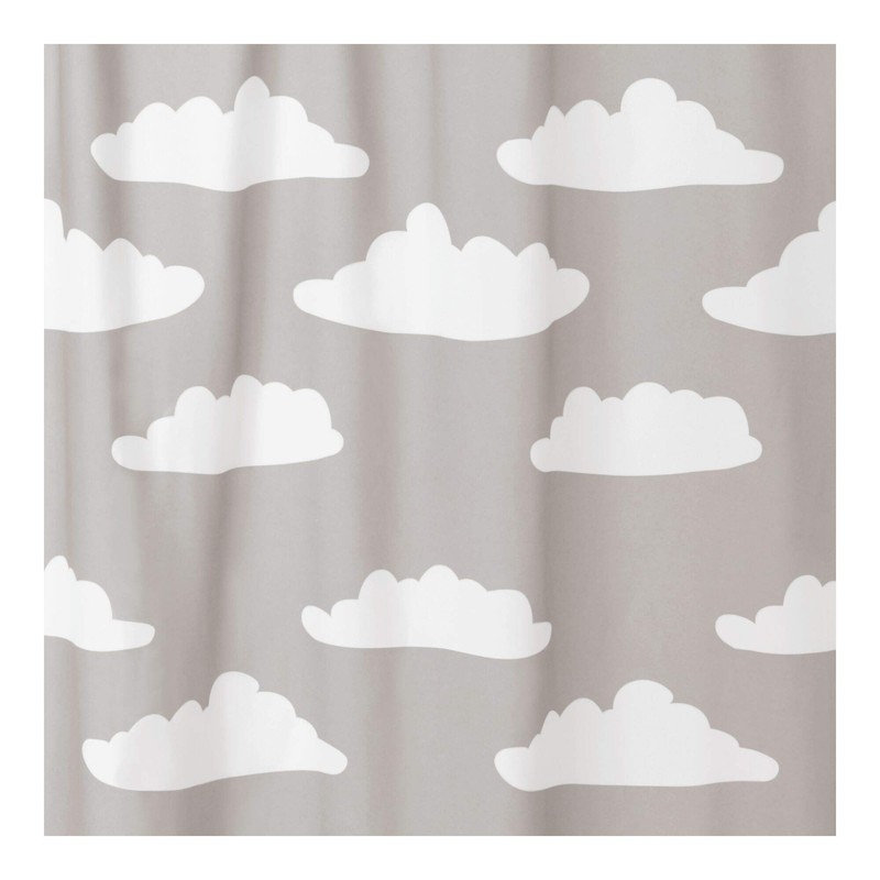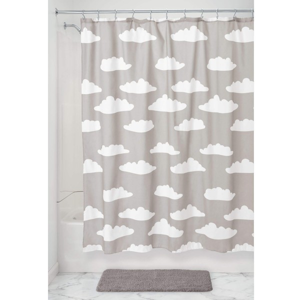 iDesign Fabric Shower Curtain with Cloud Pattern Water-Resistant Shower Curtain for Kids, Teenagers, College Dorm Bathrooms, 72" x 72", Gray and White
