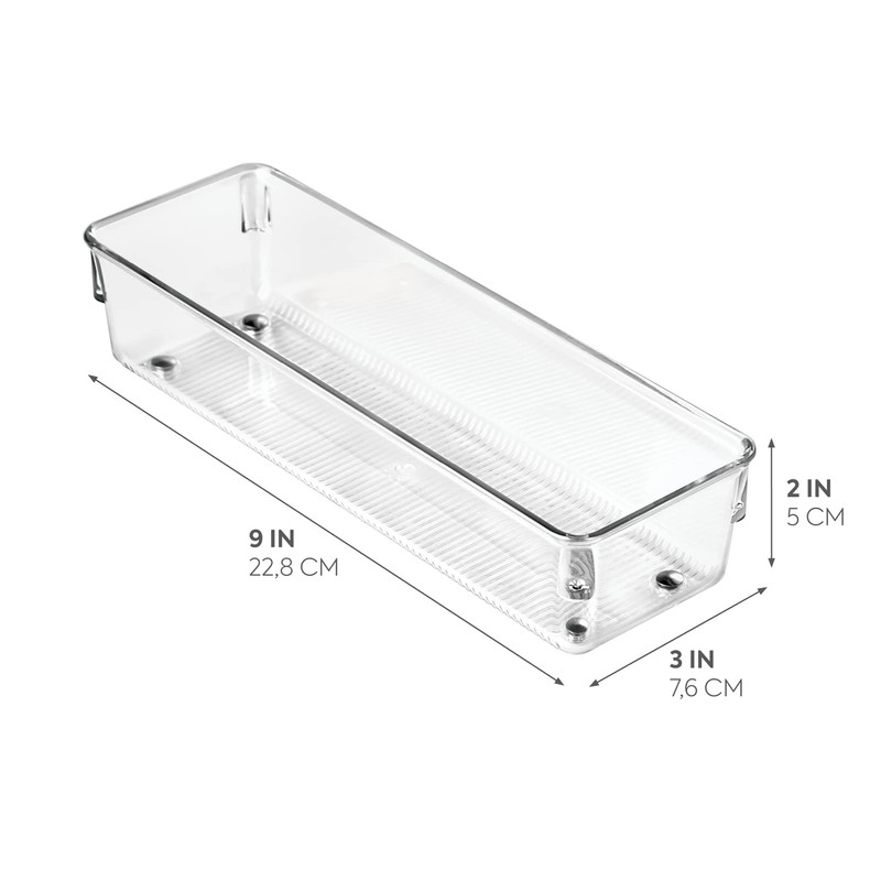 iDesign Linus Organiser Tray, Small Plastic Drawer Insert, Works Well as Accessories Organiser, Clear, 8.1 x 25 x 5.1 cm