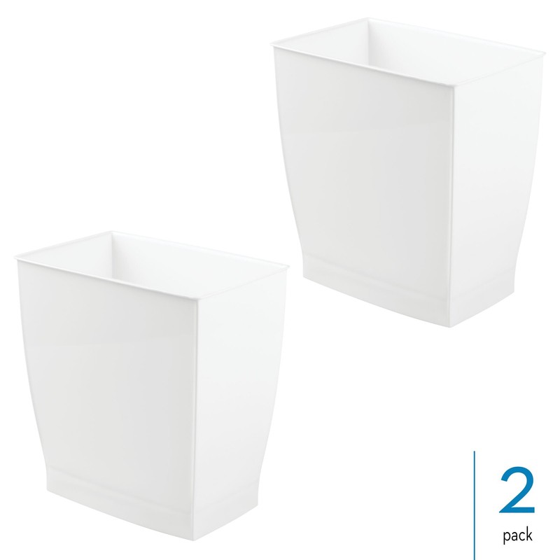 iDesign Small Rectangular Bathroom Trash Set of 2-White Waste Can