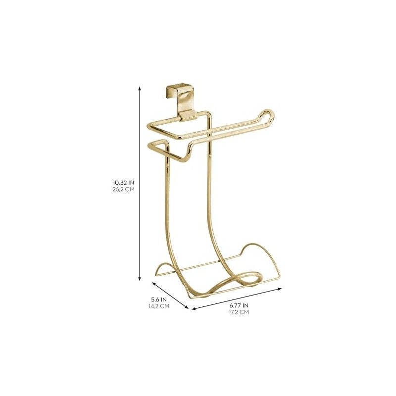 - FUNCTIONAL - The iDesign Classico Toilet Paper Holder conveniently dispenses and stores extra rolls of toilet paper right over the side of your toilet tank; Holder slides under the tank of your toilet, eliminating damage caused by wall mount fixtures