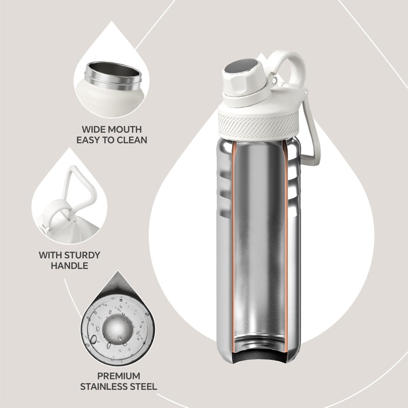 IDEUS Vacuum Insulated Water Bottle, Stainless Steel Double Wall Flask Metal Sports Canteen with Leak-Proof Screw Cap (White, 24oz (710ml))