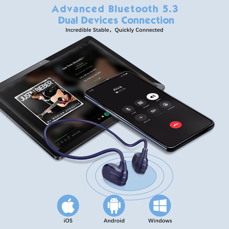 The latest Bluetooth 5.3 technology can provide morestable connection and faster signal transmission. Equipped with Bluetooth 5.3high-performance chip, premium open ear headphones ensure premium stereo sound and high-definition calls.