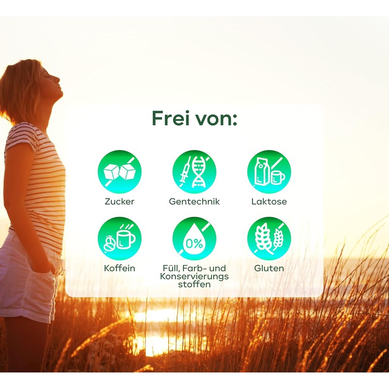 - Free from unwanted additives: no magnesium stearate, dyes, fillers, artificial flavours, magnesium salts, gelatin and of course gluten-free, lactose-free, GMO-free and without preservatives