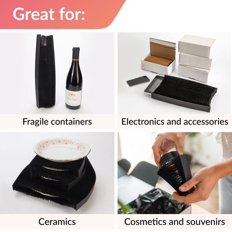 - 【ADAPTABLE PACKAGING FOR ANY SHAPES】 Thanks to a special honeycomb paper base, this sustainable analog to bubble wrap pouch adapts to any shape, forming a shock-absorbing layer around it. These packing supplies fit snugly to the surface fixing on the object. Do not slip off or require additional wrapping, fixing, taping, etc.