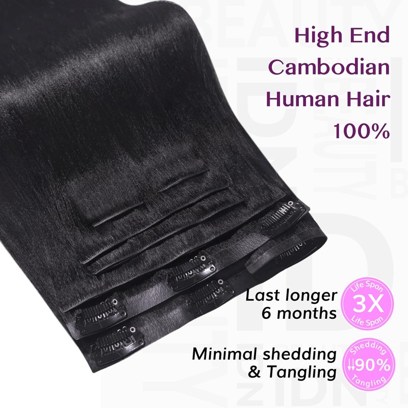 - The Optimal 5 + 2 Choice: Each pack contains 5pcs invisi edge clip ins and 2pcs seamless clip ins, and it looks sleek and conforms well to the head shape, adding to its aesthetic appeal. Moreover, it combines the advantages of both, being more cost-effective and offering the most natural hair to you