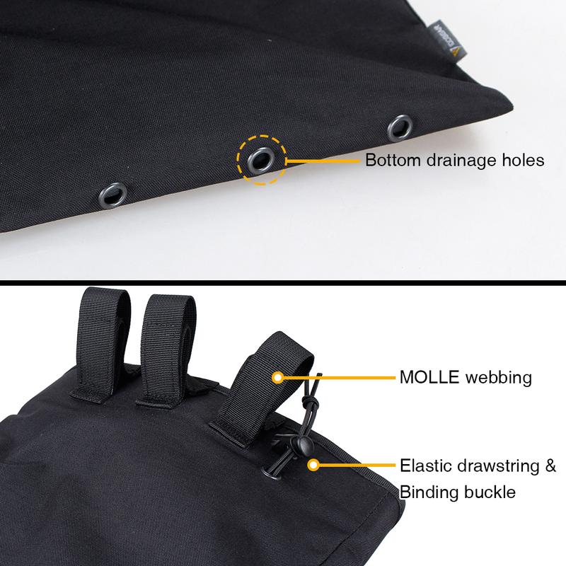 LARGE STORAGE AND LIGHTWEIGHT: IDOGEAR mag dump pouch size is:10.4*11.4 inches, it is a large storage room for your magazines, and it has three drainage holes for bad weather condition, and its net weight is only 0.3lb that will not add extra weight to you. This will be a nice enjoy. What’s more there is one plastic circle strap to keep the top opening that help you access quickly.