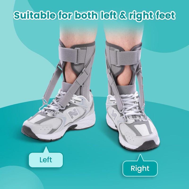 iDonau AFO Drop Foot Brace for Walking with Shoes for Right and Left, Adjustable Foot Drop Splint with 2 Metal Hook (Gray)