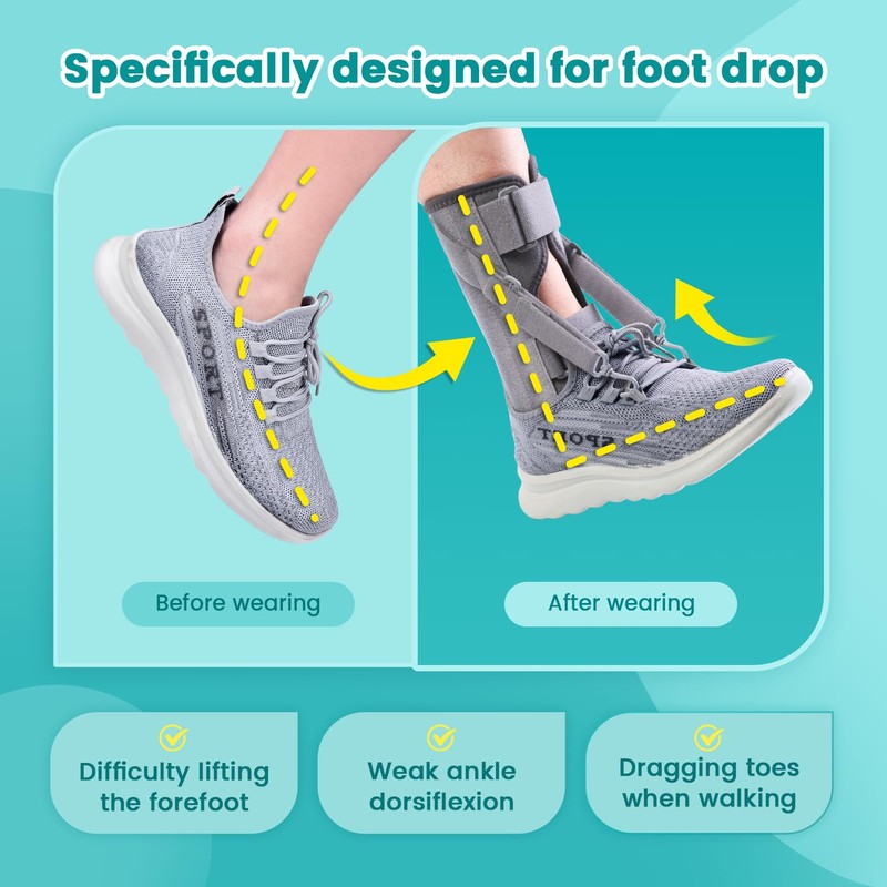 • 【Newly Upgraded Foot Drop Brace】: This foot drop brace is designed by the iDonau R&D team for people with foot drop and ankle flexion and extension disorders caused by stroke, multiple sclerosis, and nervous system damage. It provides more support for dropped feet, very suitable for symptoms such as difficulty or inability to lift the front of the foot when walking, weak foot levator muscles, and dragging of the sole or toes.