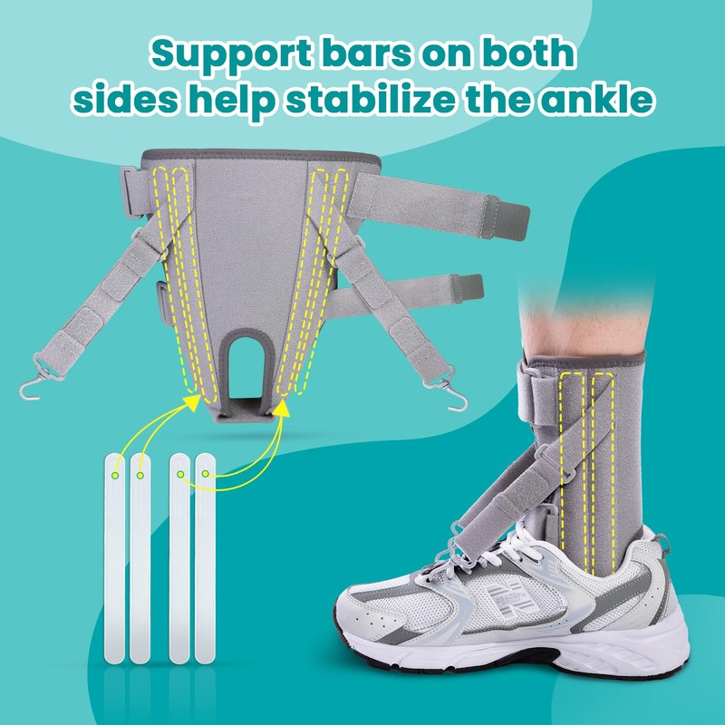 • 【Support on Both Sides for More Stability】: This foot drop brace has 4 built-in support bars, which help stabilize the ankle from both sides, provide very effective support for the ankle, and improve walking ability, which helps to reduce the fatigue caused by walking and make walking more stable.
