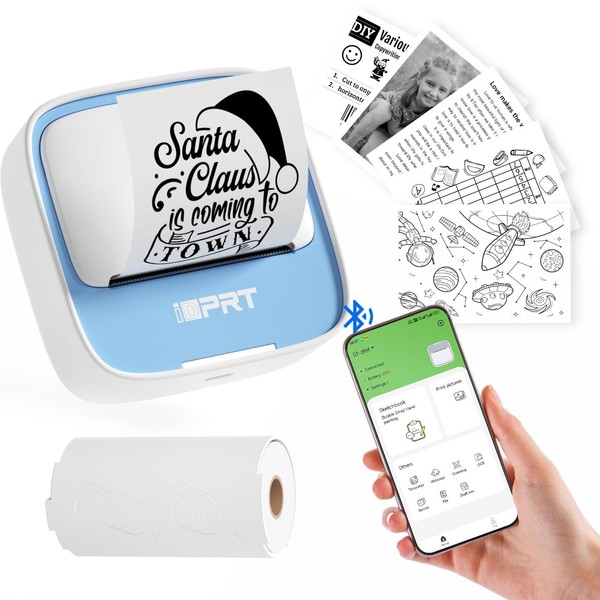 iDPRT Sticker Printer, Portable Thermal Printers Bluetooth Inkless Printer with 1 Roll Sticker Paper, Sticker Maker for Home Office School, Compatible with Android & iOS Phones, Blue