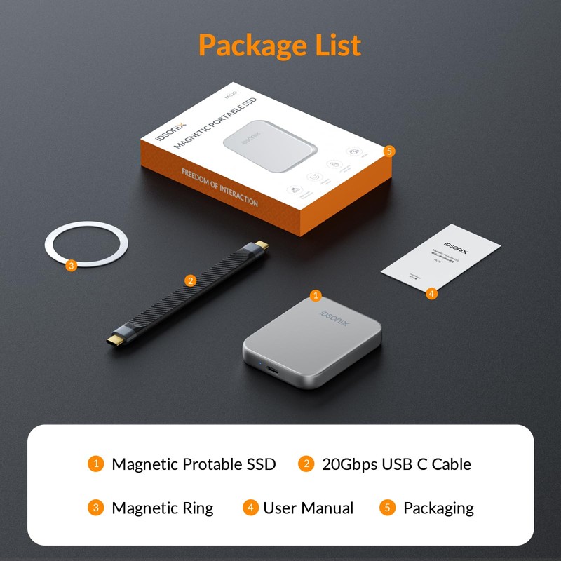 • Strong Magnetic Design: This MC20 512GB USB C SSD not only equipped with magnetic structure but also comes with an additional magnetic ring. Whether your device or case supports magnetic suction or not, this external magsafe SSD can be firmly to the back of your device and not easy to fall off. MC20 512GB external storage drive provides you with a convenient mobile storage solution.